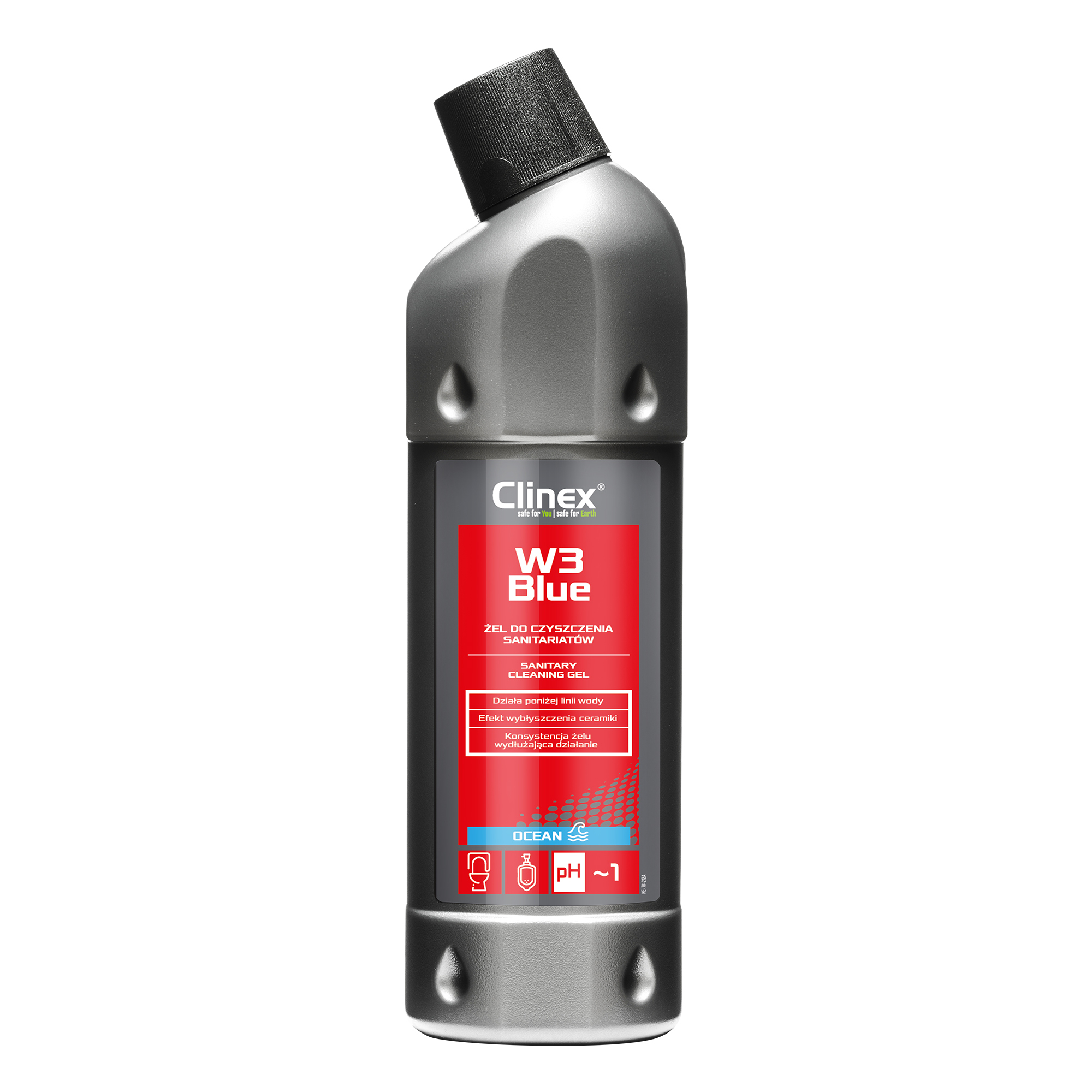 Clinex W3 Blue – це вдосконалений гігієнічний гель, який забезпечує нову якість прибирання. Засіб у вигляді гелю для санітарного очищення відрізняється підвищеною в’язкістю. Завдяки своїй унікальній формулі Clinex W3 Blue гарантує тривалу дію навіть нижче ватерлінії. Він чудово видаляє всі відкладення, іржу та вапняний наліт. Спеціально розроблена консистенція дозволяє точно наносити засіб безпосередньо на забруднені поверхні, забезпечуючи глибоке очищення без необхідності багаторазового нанесення.